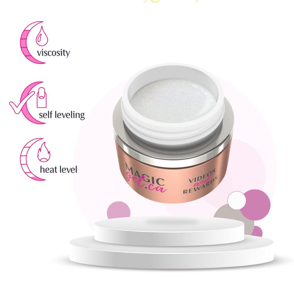 Get ready for acrygel revolution - strong like acrylics, yet self leveling like gel! No more mess, liquids or spatulas. Just use it like your regular builder gel and start enjoying working with acrygel! Self leveling formula means faster sculpting, better results, much less filing and no lifting! These new acrygels come in no heat formulas, keeping your clients comfortable every second. Colour: Clear with tiny glitter Cure time: 2 min UV in 36 watt lamp, ~90 sec LED (depends on the bead thickness) Application tip: to get a perfect coverage apply with a slow soft touch using Magic Brush Size: 15 ml, 60ml