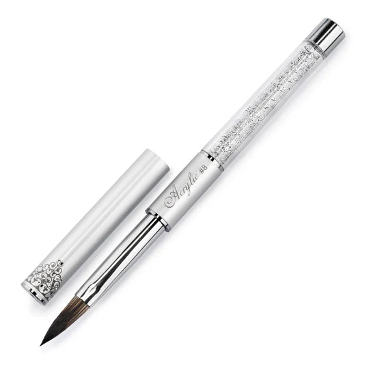 Our Premium Natural Hair Acrylic Brushes are individually hand crafted. The beautiful, chemical resistant, genuine crystal handles will dazzle your customers as they sparkle in the light.  PLEASE NOTE: Our #14 brush does not come with a matching lid.
