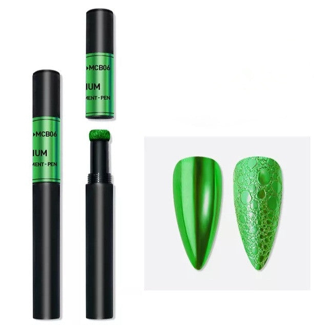 Rub pigment pen powder onto nail