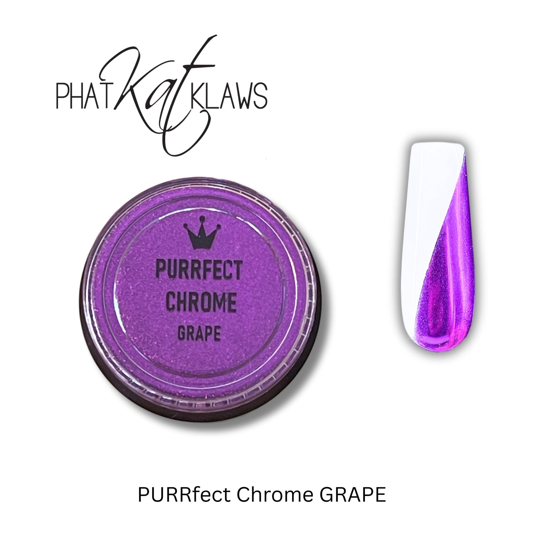 Phat Kat Purr-Fect Grape Chrome applies beautifully over color or plain finished nail to add an amazing purple sheen to your nails.