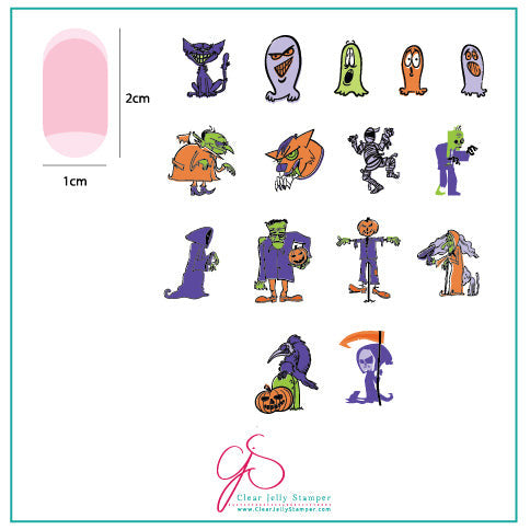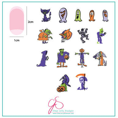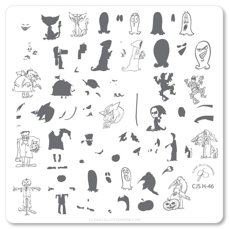 Whip out your Spooky Tunes (CjSH-46) Steel Nail Art Layered Stamping Plate and get ready to scare your hood with some monster-ously fun Halloween nail art! Featuring Frankenstein, The Mummy, Ghosts and Goblins, Cats, Pumpkins, Scarecrow, Wolverine, and the Grim Reaper, it's the perfect way to get your wicked fix. Boo-tiful!