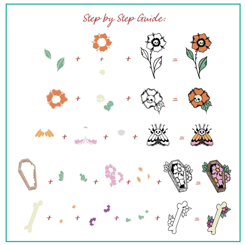 Introducing the To be Determined (CjSH-91) Steel Nail Art Layered Stamping Plate for those seeking to dress up their digits! Get festive with happy Halloween themed images like spiders & webs, coffins, flowers, moths, skulls, and mushrooms. Or, for those looking for something a bit sweeter, stamp hearts, bones, and other symbols of love. A guaranteed scream!