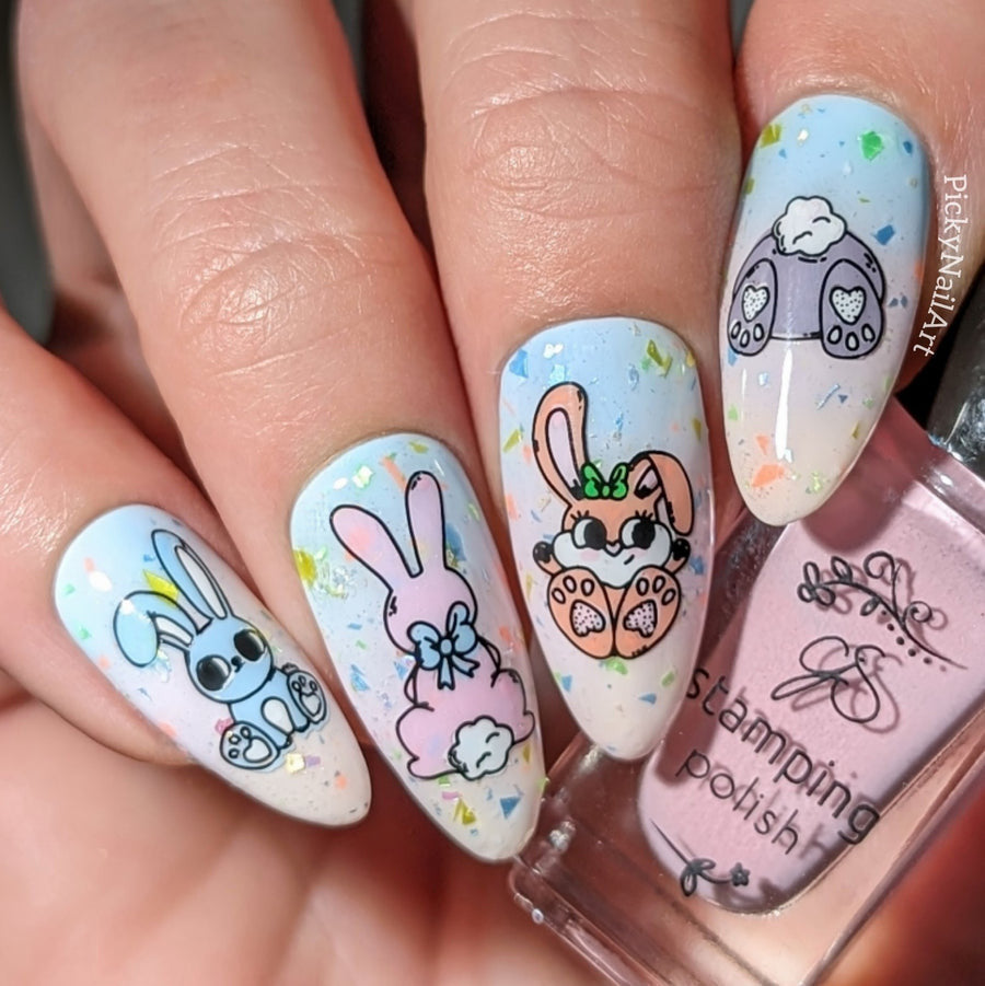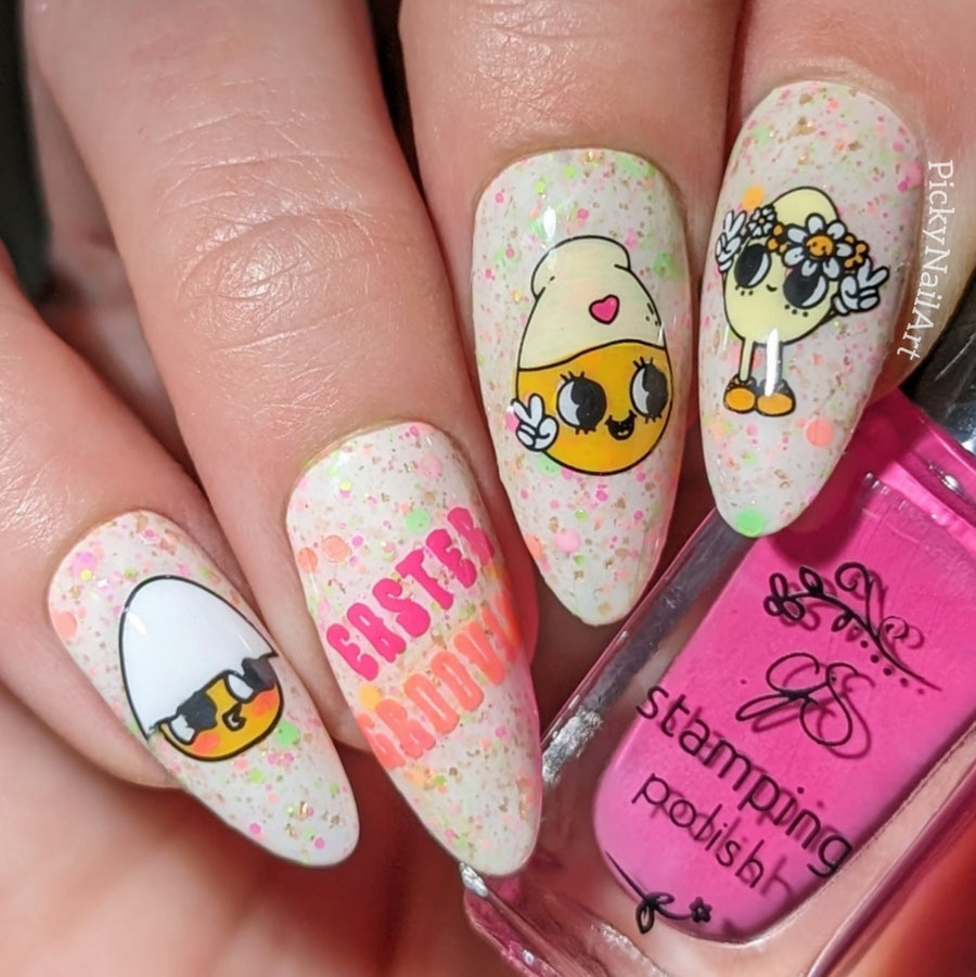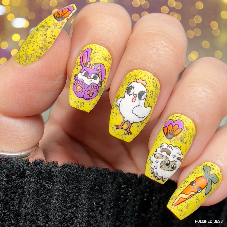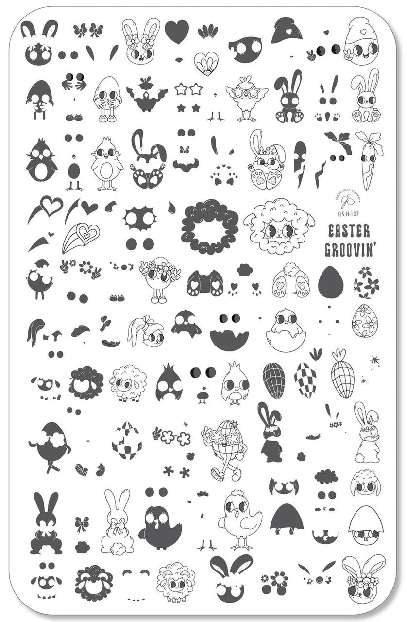 Dive into the whimsical world of Easter festivities with Clear Jelly Stamper's enchanting steel nail art layered stamping plate, CjSH-107 called "Easter Groovin'." This delightful plate captures the essence of the season with its adorable Easter bunnies, lambs, and chickadees, each displaying an irresistibly fuzzy and cute charm. Explore the variety of playful designs, including Easter eggs, hearts, bows, and carrots that add a touch of springtime magic to your nail art. The plate also features the signature long bunny ears that showcase the whimsy of Easter celebrations. With "Easter Groovin'," you have at your fingertips a fun and playful plate to create delightful and intricate nail designs that showcase the joy and vibrancy of this special occasion. Let the charm of fuzzy animals, sweet florals, and Easter-themed elements bring a festive groove to your manicure, making every nail a celebration of the season's delights