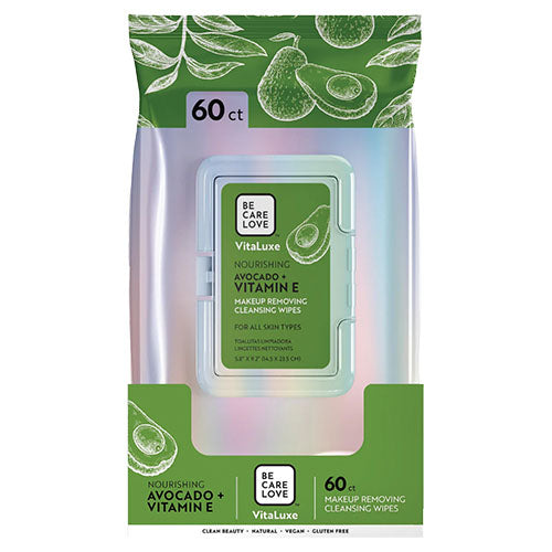 Be Care Love Vitaluxe Nourishing Avocado + Vitamin E Makeup Removing Cleansing Wipes 60ct