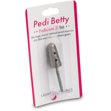 This bit works perfectly for our Q&Lu Dry Pedicure Service! The large, round, tapered barrel of Pedi Betty removes dry skin and reduces calluses gently. The holes around the bit reduce heat, providing a cooler exfoliating experience for your clients.