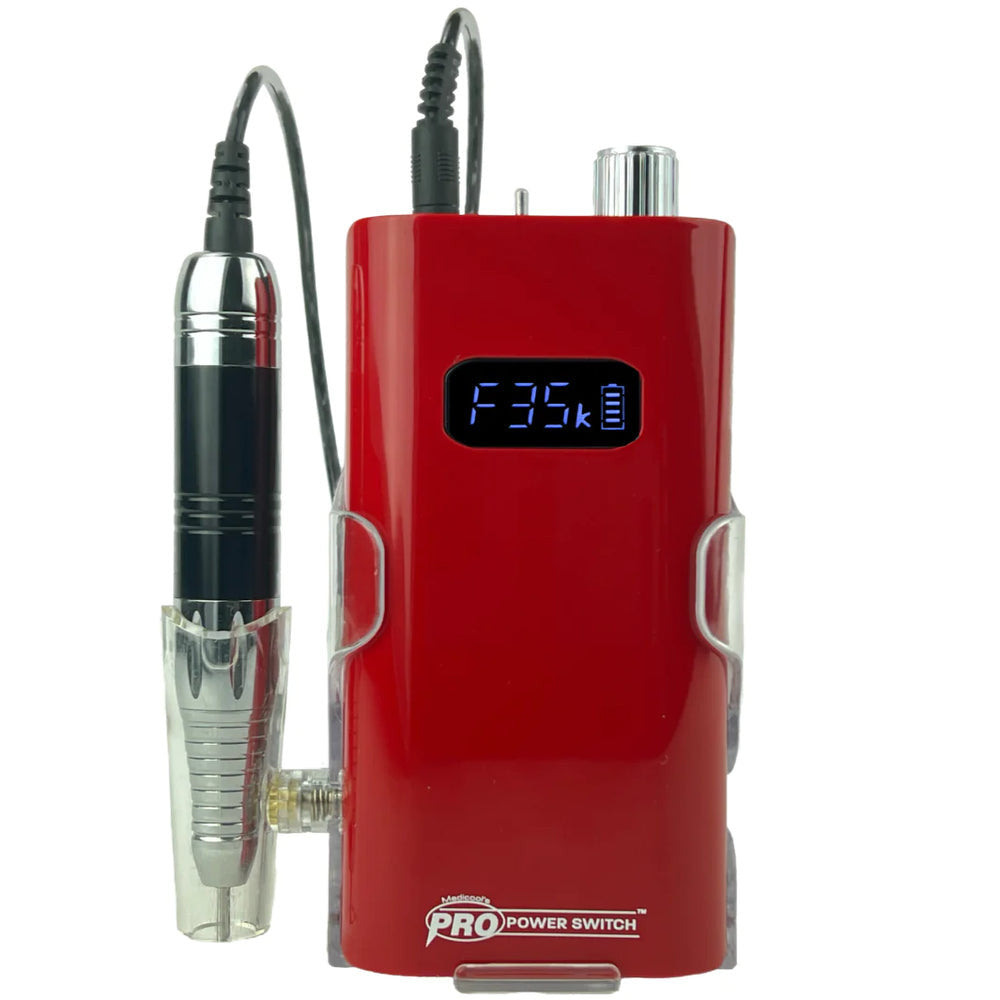 The Pro Power SWITCH is a professional and rechargeable manicure-pedicure filing system. Its cordless, rechargeable design allows for convenient portability, making it a versatile filing system for any workstation, or it clips conveniently to your belt or pocket, allowing freedom of movement. The package includes three different snap-on color case options (RED, White & Black) that you can switch to match your style. Show off your creativity with the Pro Power SWITCH!