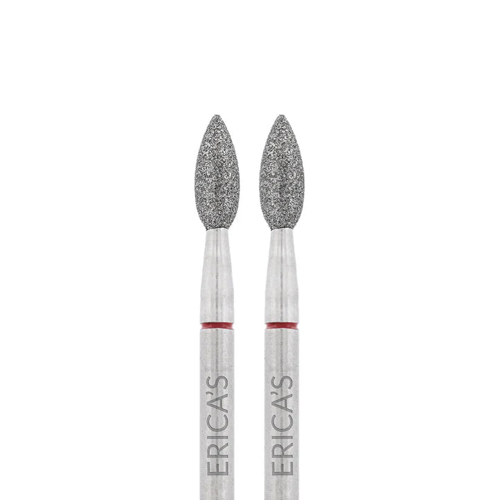 The Large Flame Bit is the largest of Erica's flame-shaped cuticle nail bits. Its ideal for exfoliating cuticles, reducing skin from the nail plate, opening the cuticle pocket, and exfoliating sidewalls. Available in fine grit, this bit offers versatility, value, and superior performance. Made in the USA with 100% natural diamond, the Large Flame Bit promises durability and excellence, making it the perfect choice for detailed cuticle work.