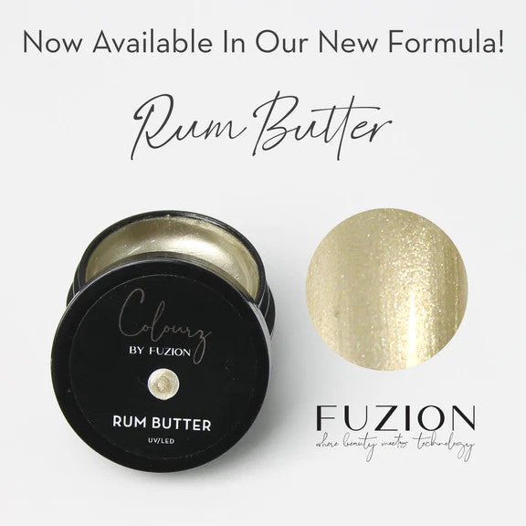 FUZION UV/LED COLOURZ - RUM BUTTER - 15 GM In Fuzion's signature formula! Easy-to-use viscosity Highly pigmented Perfect for applying on top or embedding 2 thin coats are recommended for optimum results