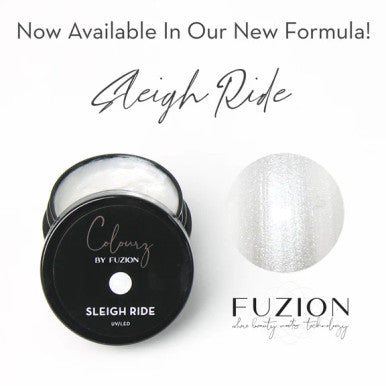 FUZION UV/LED COLOURZ - SLEIGH RIDE - 15 GM In Fuzion's signature formula! Easy-to-use viscosity Highly pigmented Perfect for applying on top or embedding 2 thin coats are recommended for optimum results