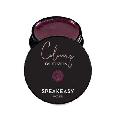 FUZION UV/LED - 15 GM Speakeasy ~ a beautiful cranberry red with a fine iridescent flake. In Fuzion's signature formula! Easy to use viscosity Highly pigmented Perfect for apply on top of embedding UV/LED 120s/60s15gm