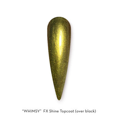 Whimsy is a mother of pearl, metallic shine Topcoat with a gold-yellow undertone.