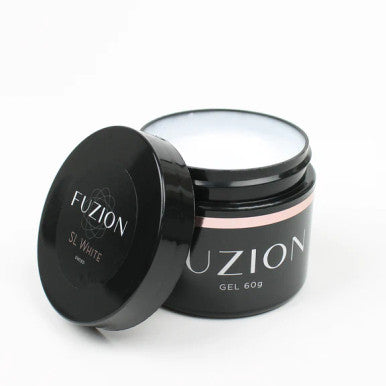 SL White | Fuzion UV/LED Gel Strong bright white, self-leveling building gel. Apply in one even thin layer for fills, and with foundation layer for new nails. Cure 60 seconds LED 120 sec UV. UV/LED Formula