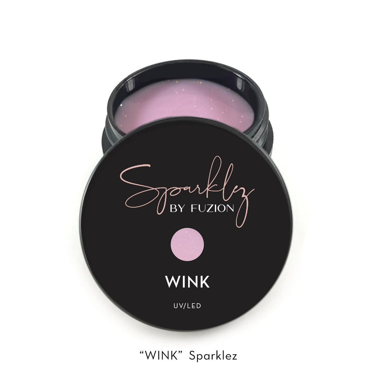 Wink is a soft semi sheer milky white with micro fine pink glitter
