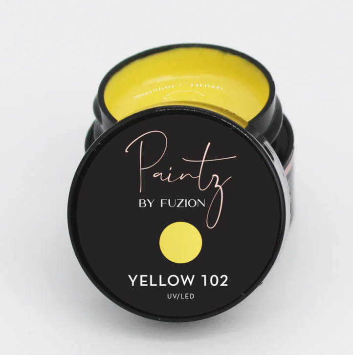FUZION PAINTZ – YELLOW 102 – 8G Thin viscosity Paintz are great for full color, detailed art, one stroke and more! Cures to a high shine with no tacky layer! One coat coverage, and amazing workability.