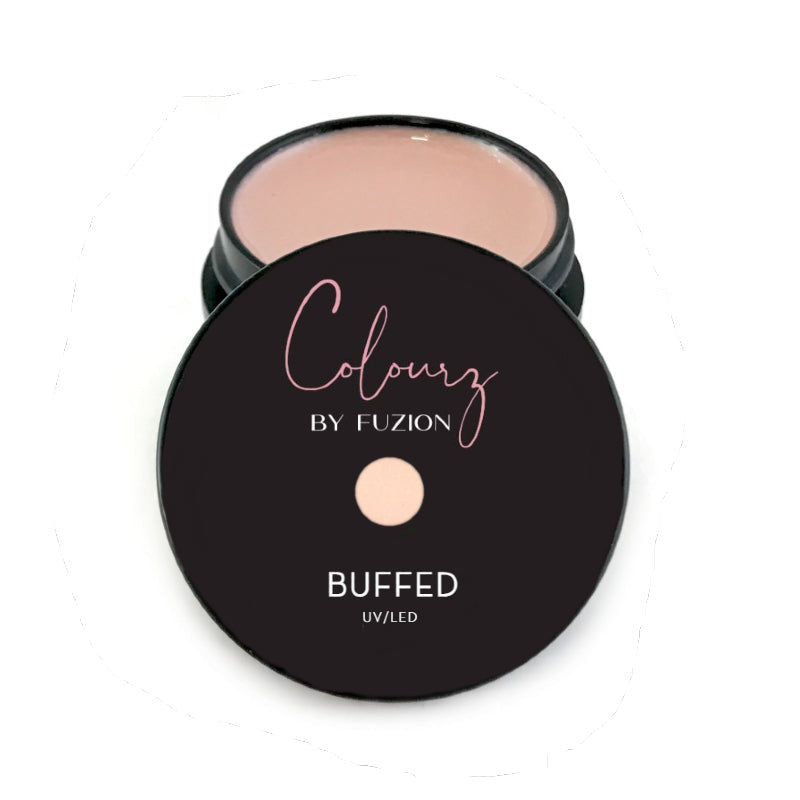 Buffed is a creamy light nude with a microfine silver shimmer. In Fuzion's signature formula! Easy to use viscosity Highly pigmented Perfect for apply on top of embedding UV/LED 60s 15gm