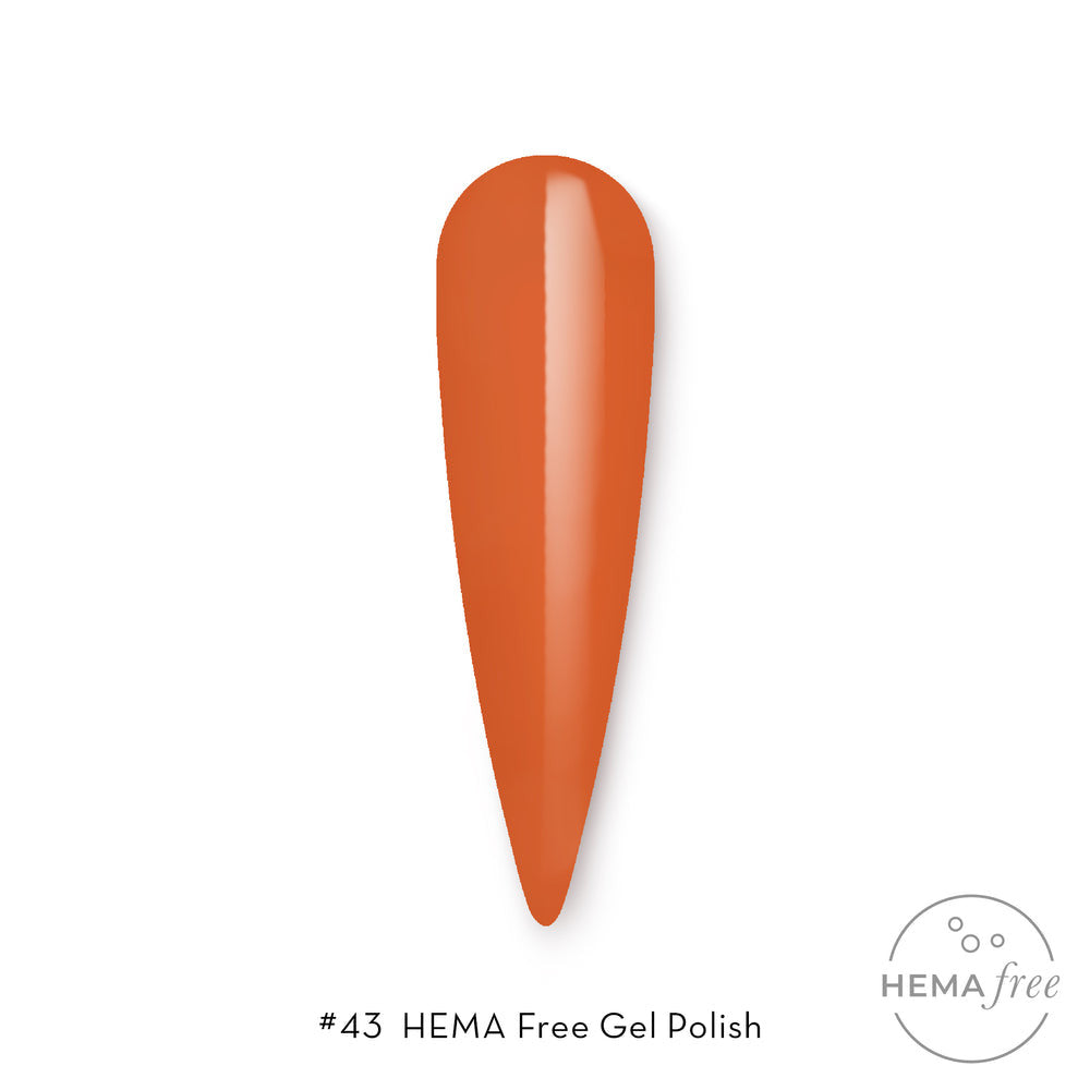 New addition to the Fortify line - HEMA Free Gel Polish! Colour 43 is a creamy, flat deep pumpkin orange colour.