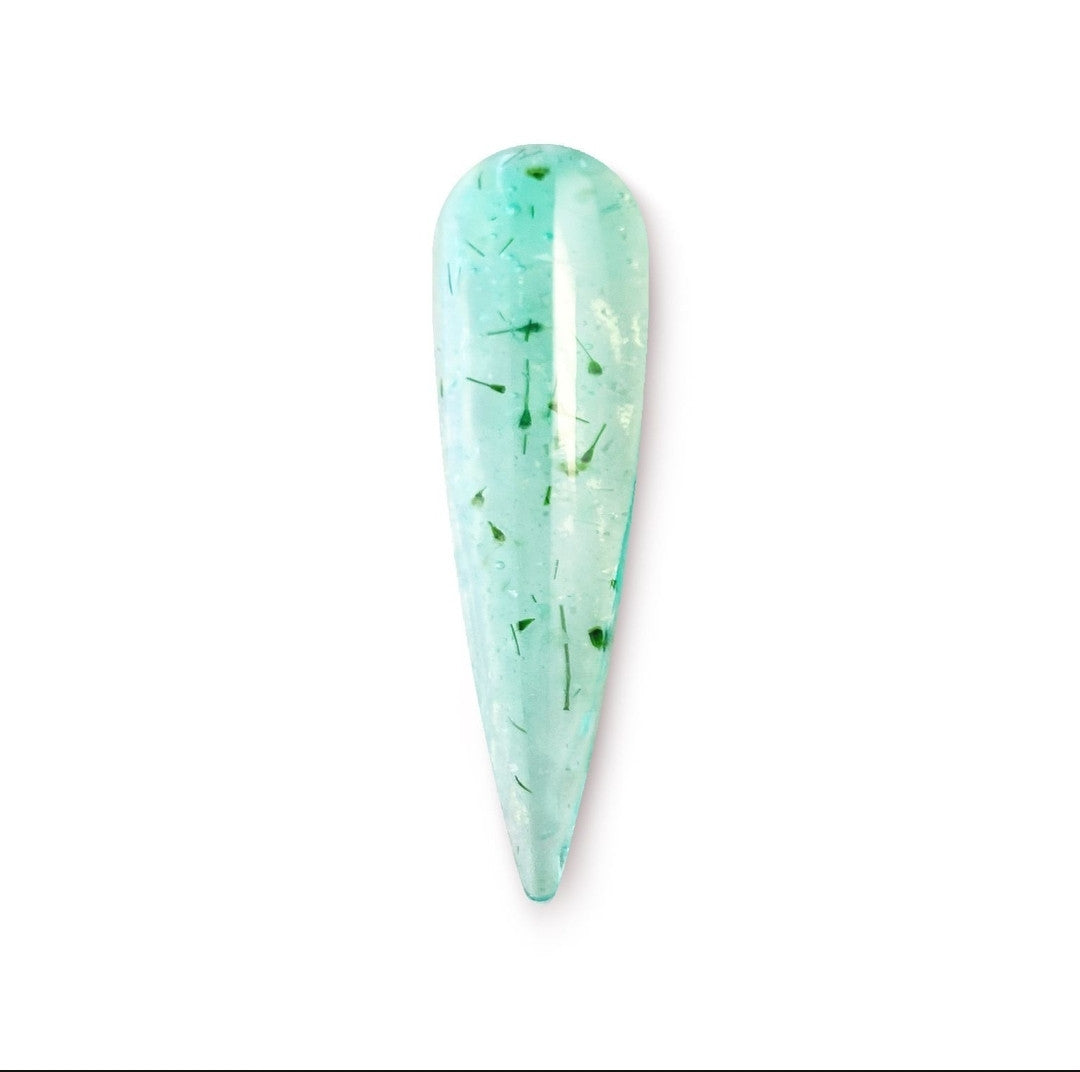 Mint Glass Flower Gel is a light translucent green glass gel infused with dried flowers. Perfect for layering over white or pastel colours, or on its own for a sheer glass nail!