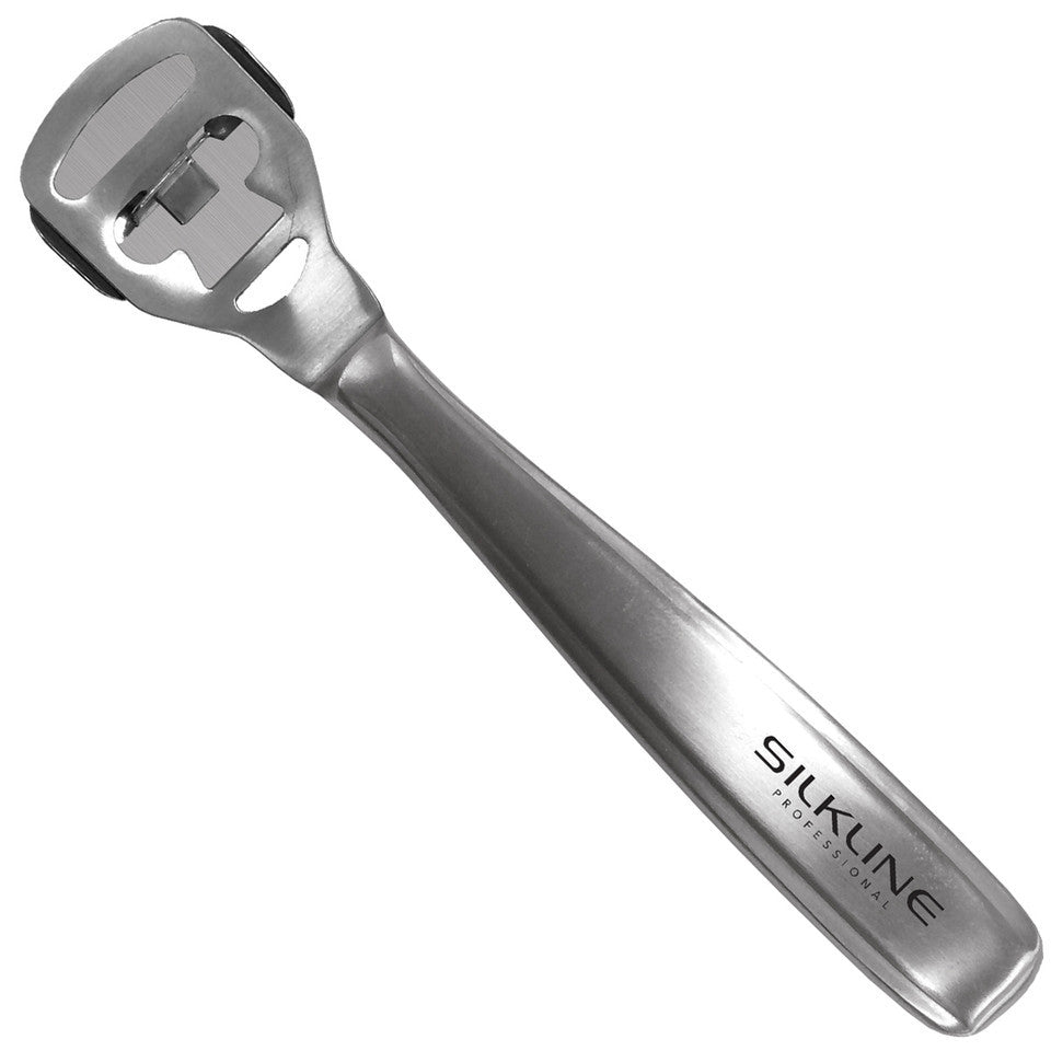 Easily removes calluses: shaves away thin layers of dead skin on feet Leaves feet smooth Full stainless steel handle Can be sterilized in an autoclave Sterilizable: can be immersed in cold soak sterilizing solutions 10 replacement blades included