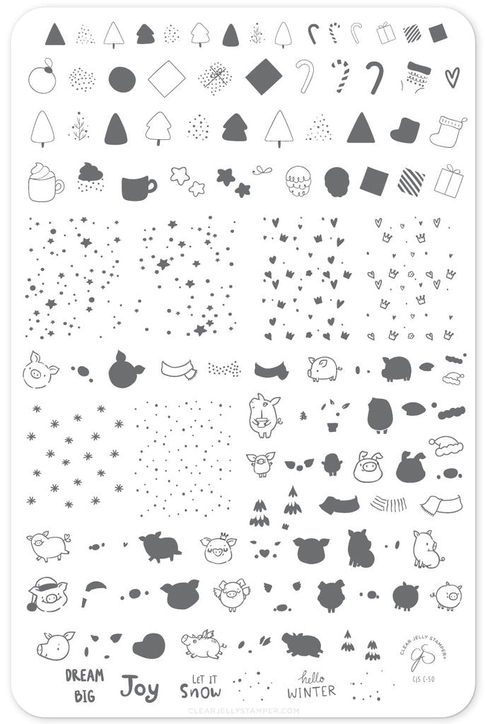 Piggy Christmas (CjS-C-50) Large Stamping Plate