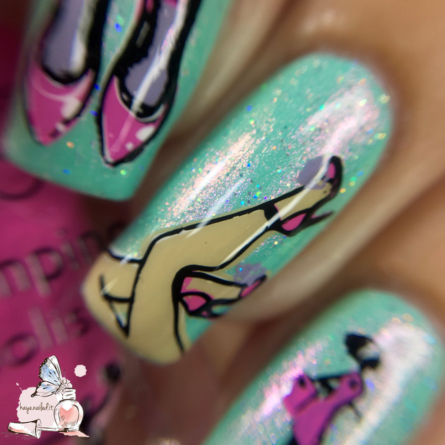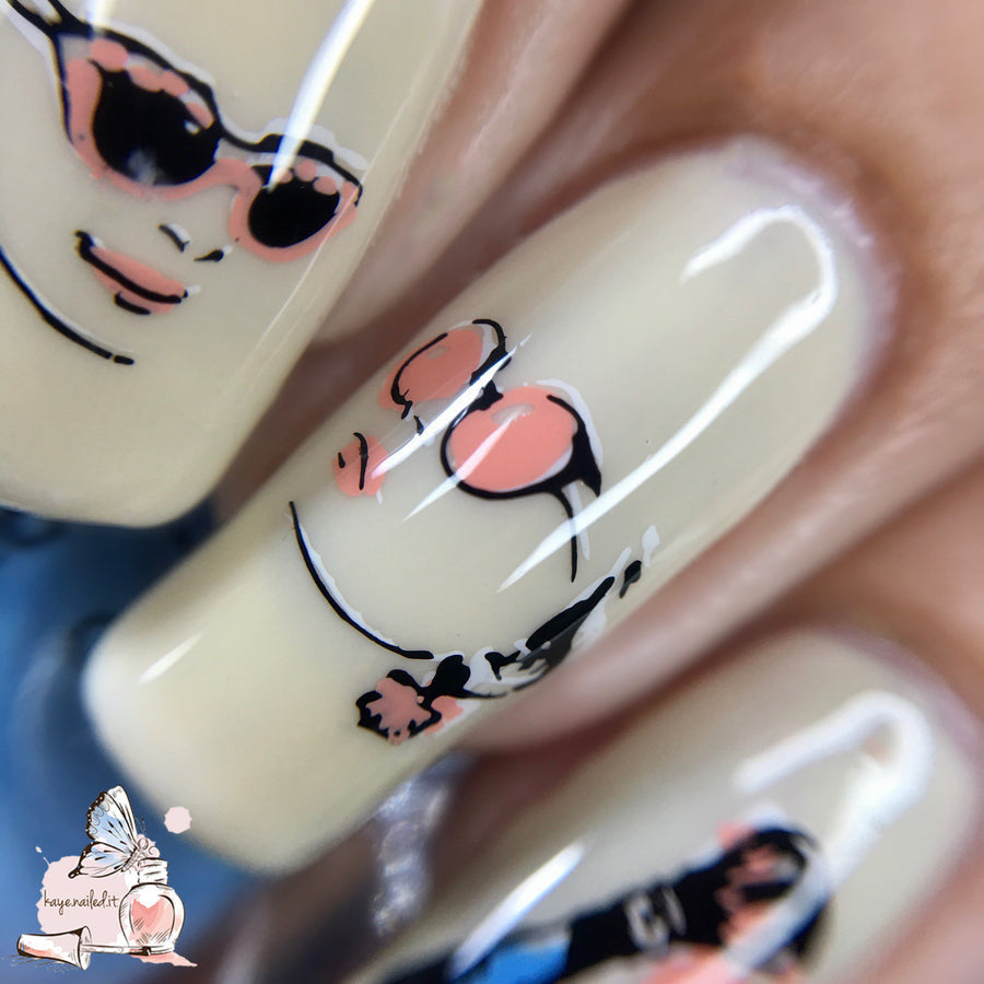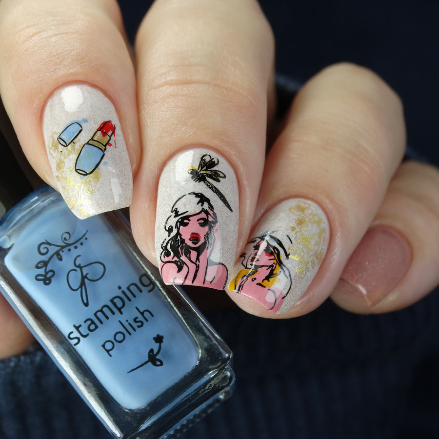 This gorgeous, delicate plate is full of beautiful, layered, fashion-inspired nail art images. Kaye has an eye for pretty things!