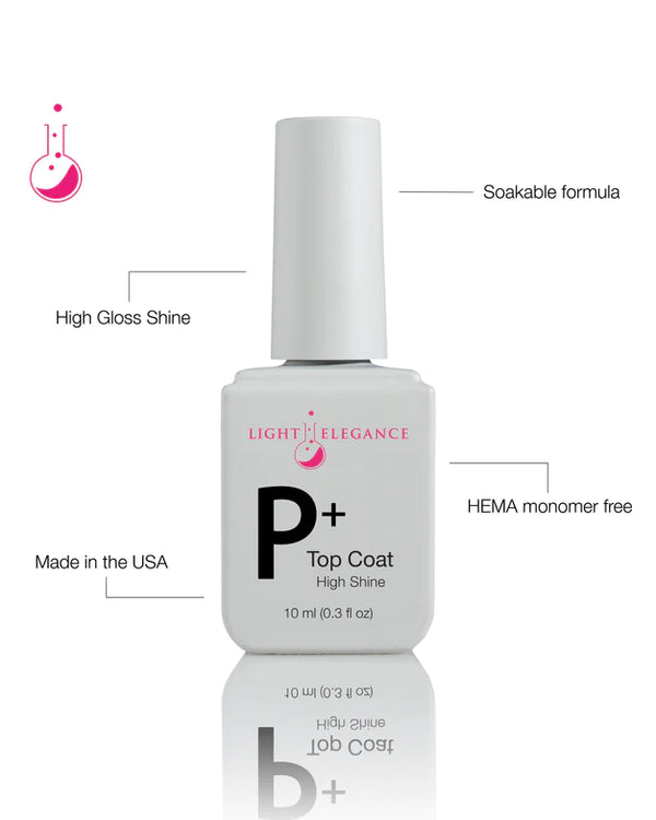 Like all Light Elegance gels, P+ Top Coat is formulated and manufactured responsibly in Redmond, Oregon and rigorously quality-checked for consistent performance and shine with every batch.