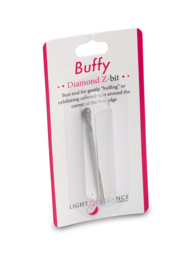 The medium diamond bit is the best tool for gently “buffing” or exfoliating callused skin around the corner of the free edge. Buffy can also used to exfoliate dead skin that has been pushed up and off of the nail plate. (Not to be used on the nail plate).