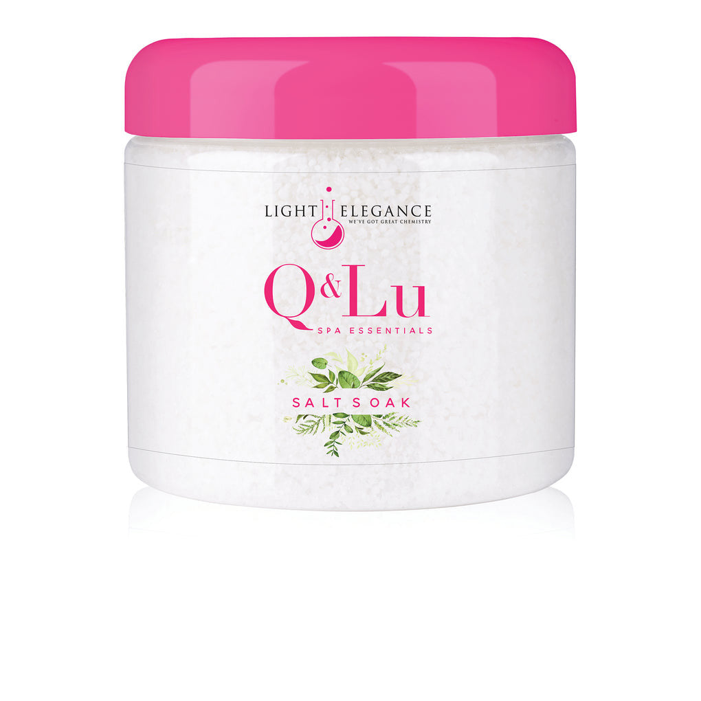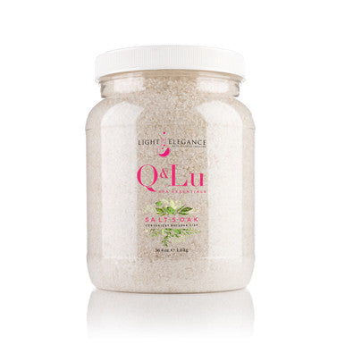 Q&Lu Spa Essential Salt Soak is an ultra-fine and lightly fragranced salt to soften cuticles and callus. This luxurious soak has a gentle foaming action and contains Dead Sea Salt, Epsom Salt and essential oils of lavender, peppermint, spearmint and sage to nourish skin.