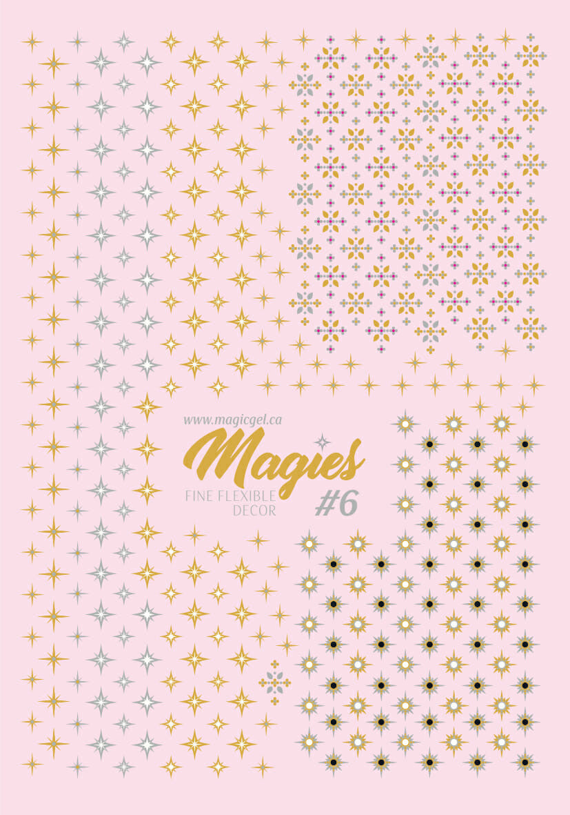 Add Magies to your service and transform your designs fast and easy. Each sheet features lots of Magies to last you for many nail services.