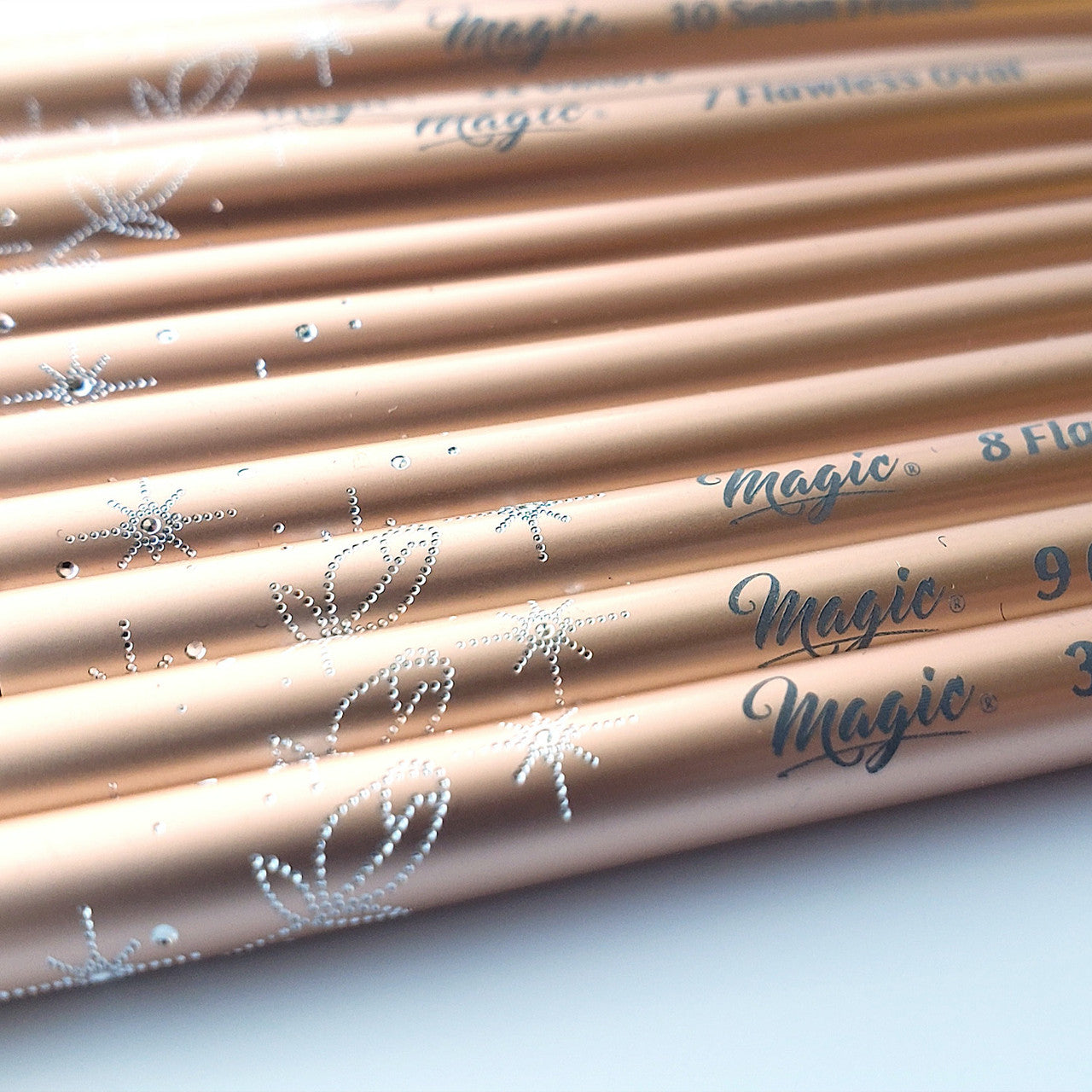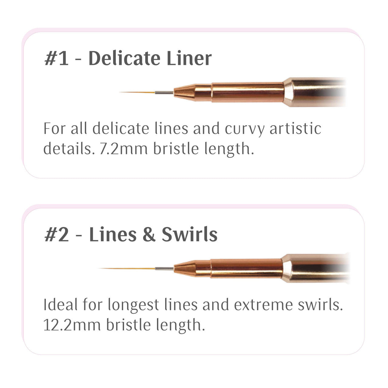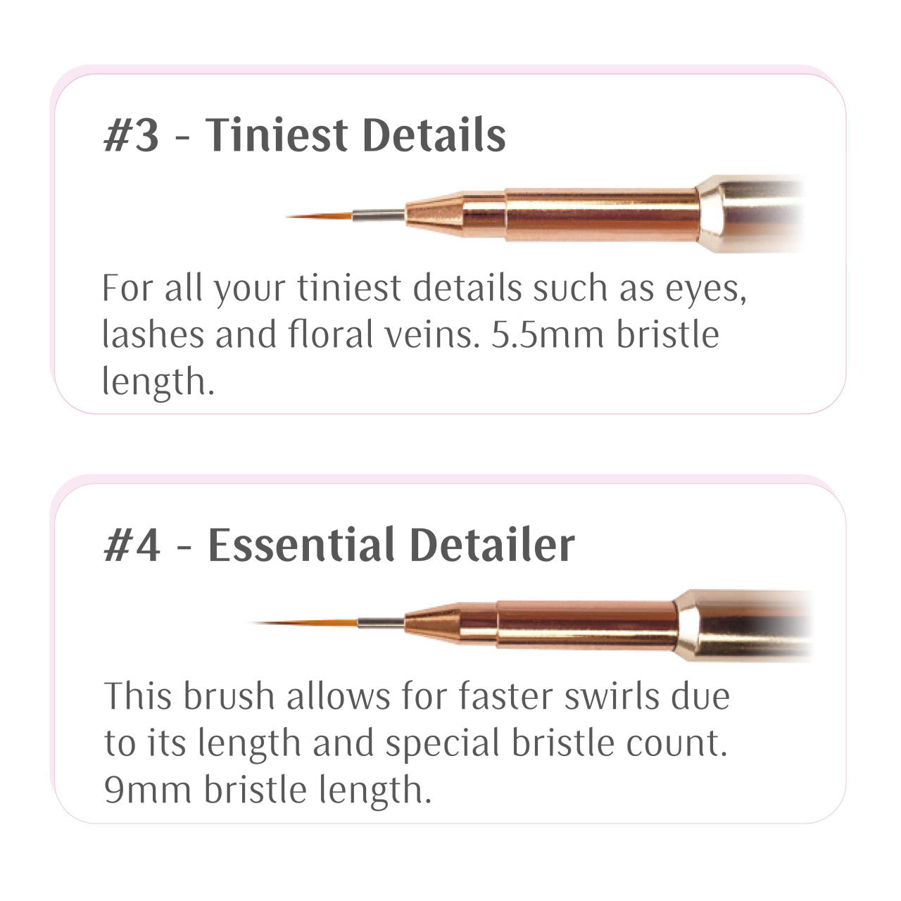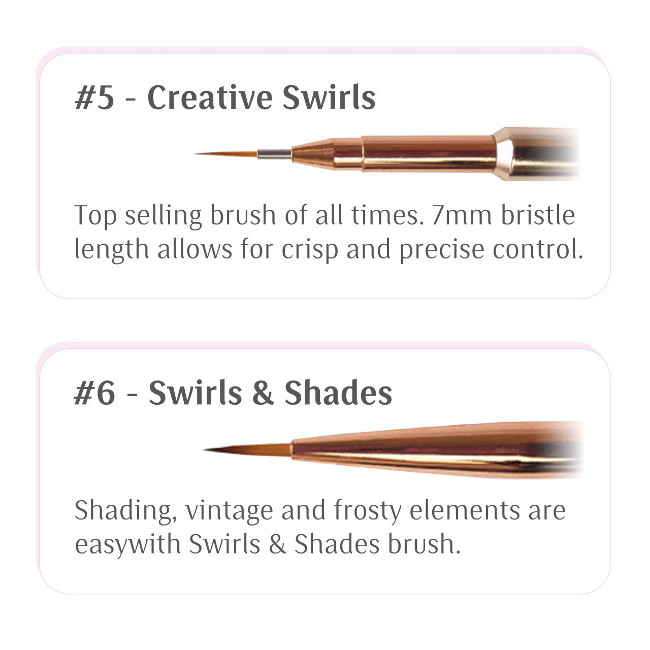 Now you can store your brushes more secure and make them last longer. Then, you will see that we expanded our brush lineup a lot. From a big variety of thin detailing brushes with different bristle length to the classic #7 brush. Now we have you covered for any designs you plan to do. We also spent a lot of time perfecting the bristles. Synthetic bristles make picking up the right amount of gel extremely easy. Bristles are soft, which means they will repeat every curve of your designs with ease. Grab them in the kit and enjoy $40 in savings and a free storage case. Includes: 11 brushes, 1 case.