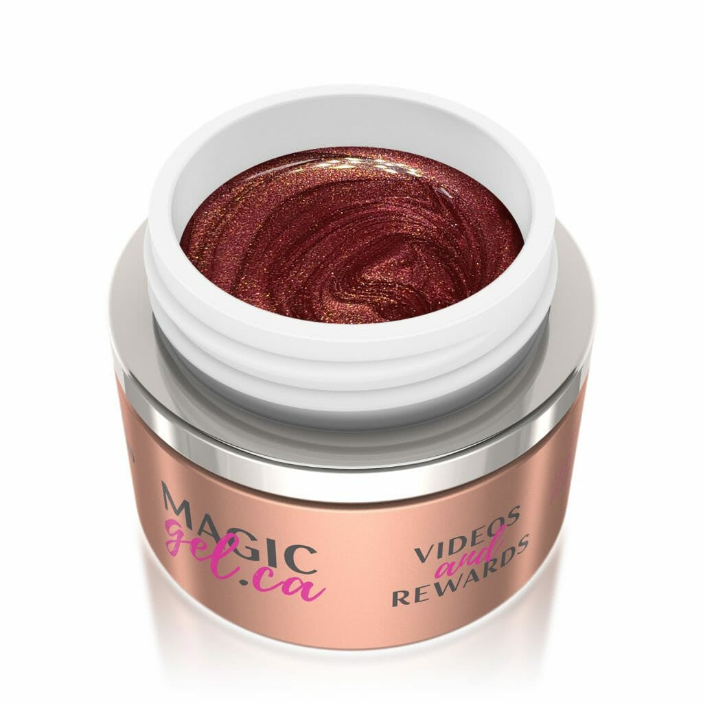 A dusty merlot red with a touch of elegant gold shimmer. The light captures this delicate shimmer and makes the gold truly sparkle.