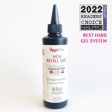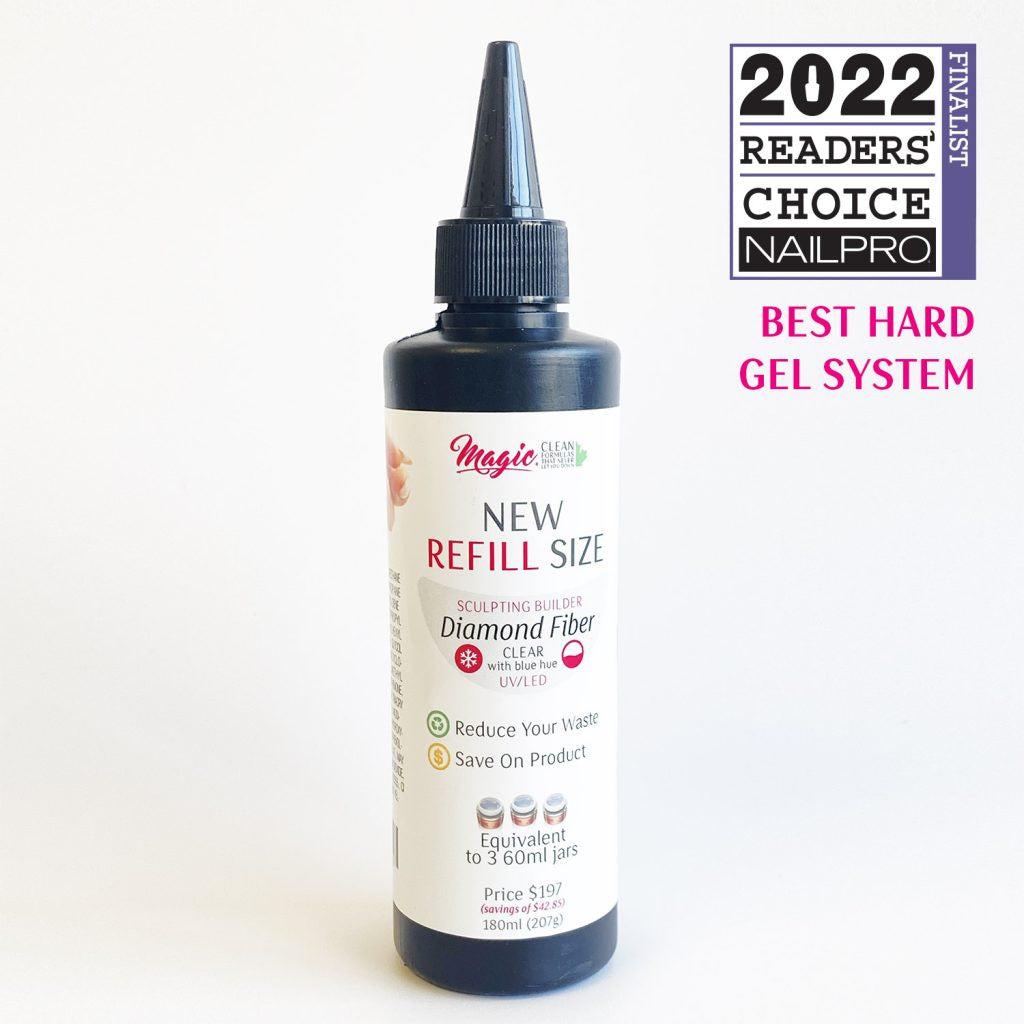 Save on product and reduce waste! Newest refill bottles feature unbeatable savings - over $40 compared to 60ml jars. One refill bottle is equivalent to 3 big builder jars, reducing your waste and making sure you always have enough supply of your favorite builder gel.