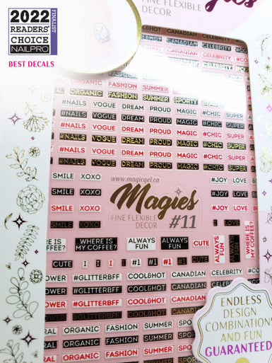 Add Magies to your service and transform your designs fast and easy. Each sheet features lots of Magies to last you for many nail services.