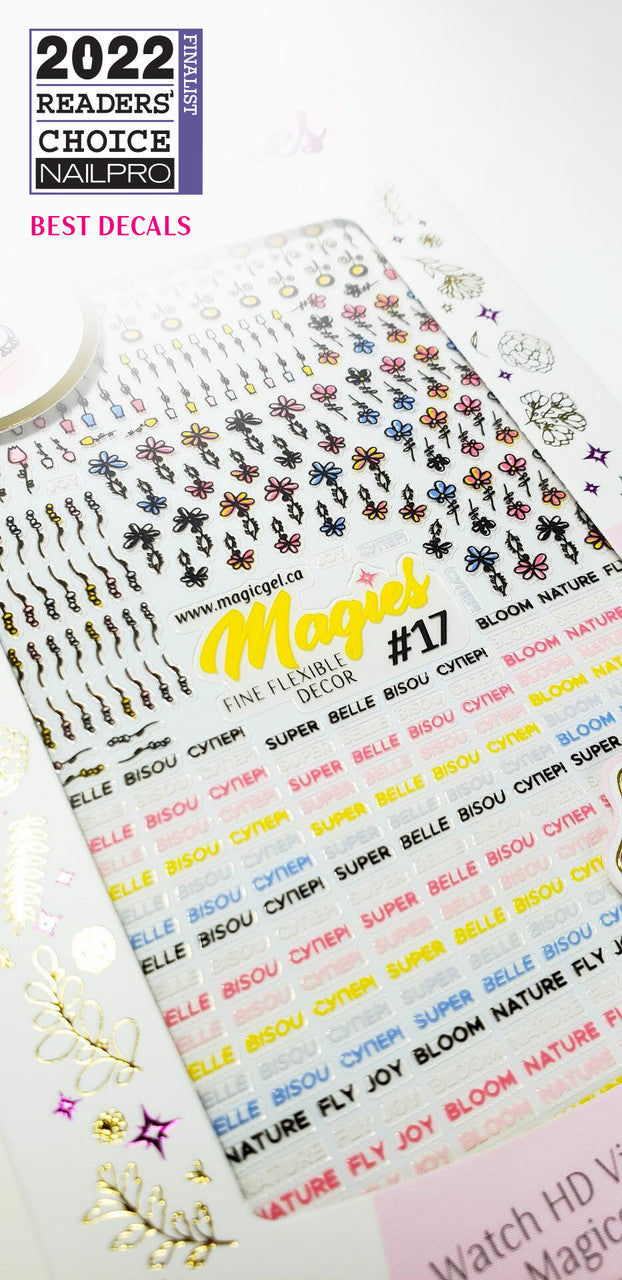 Add Magies to your service and transform your designs fast and easy. Each sheet features lots of Magies to last you for many nail services.
