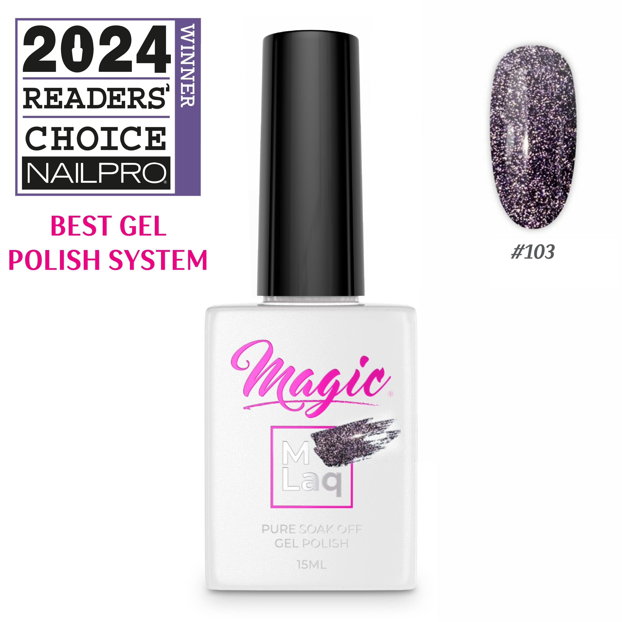 MLaq Reflections Charcoal – #98 MLaq Reflections Teal – #99 MLaq Reflections Lakeview – #100 MLaq Reflections Nightsky – #101 MLaq Reflections Blue – #102 MLaq Reflections Violet – #103 MLaq Reflections Purple – #104 MLaq Reflections Raspberry – #105 Cure time: UV 2 min in 36 watt lamp; LED 30 sec Size: 8 x 15 ml