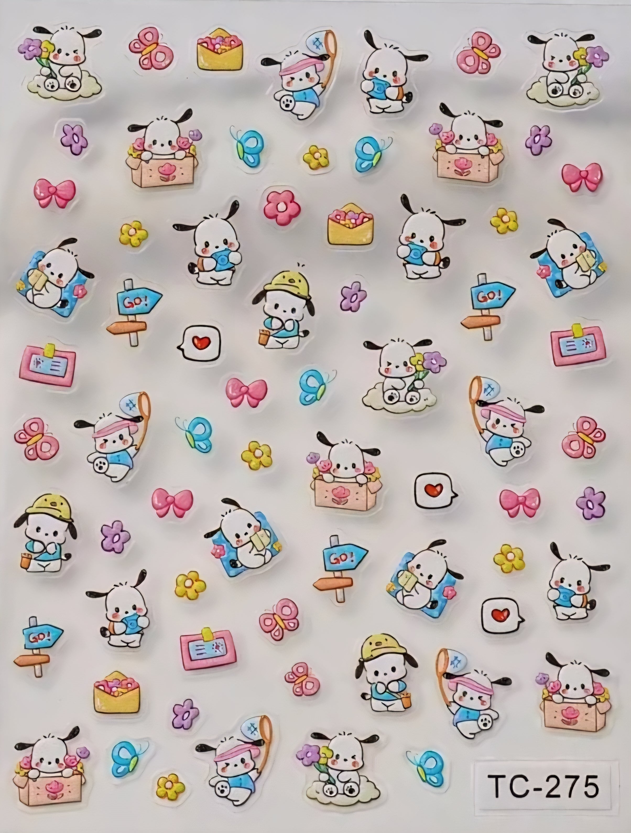 Explore the world one nail at a time with our Adventure Pup 5D Nail Stickers – TC-275. Featuring a curious puppy on the go—reading maps, chilling in a box of flowers, or rocking a safari hat—this sticker set brings travel, whimsy, and soft pastels together for a playful look that’s perfect year-round.