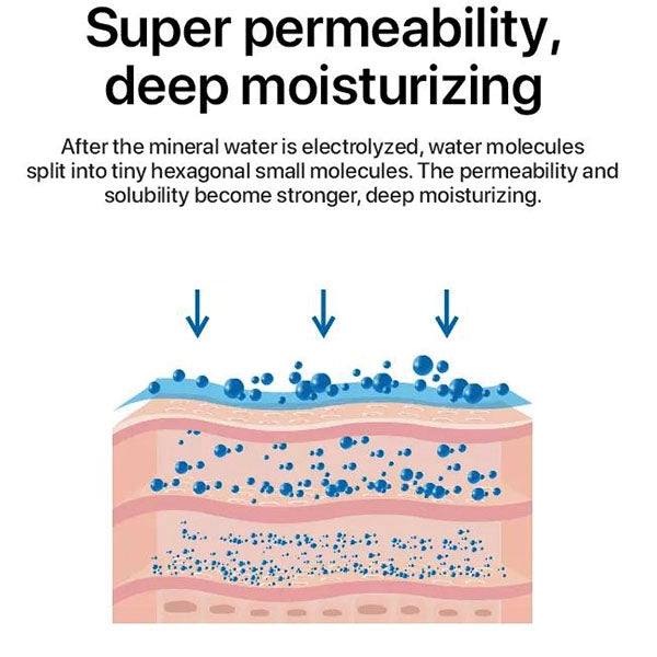 - Creates micro water clusters through electrolysis for faster skin absorption and maximizes moisturizing