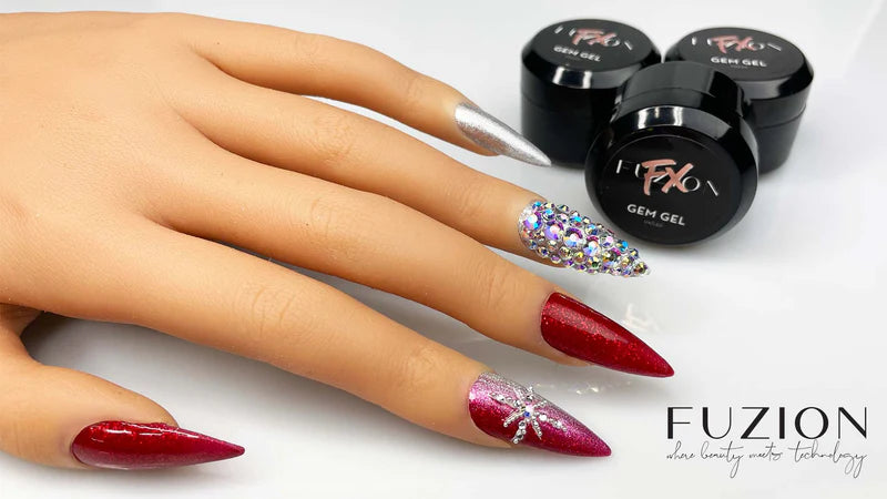 Our new Fuzion FX Gem Gel is designed to ensure your beautiful gem design work can survive on even the toughest clients. This formulation has been in testing for over 6 months and we are thrilled with the results!