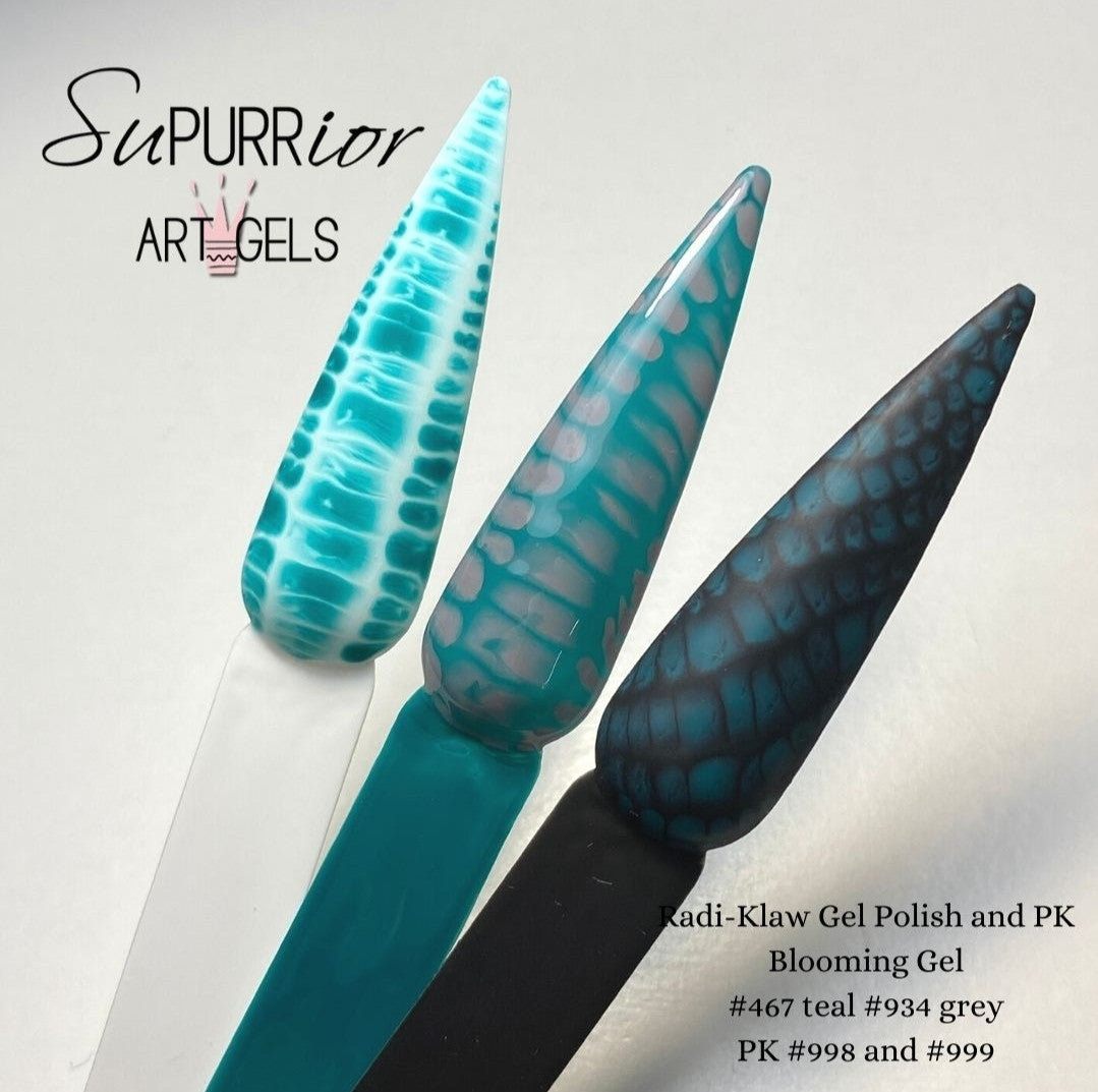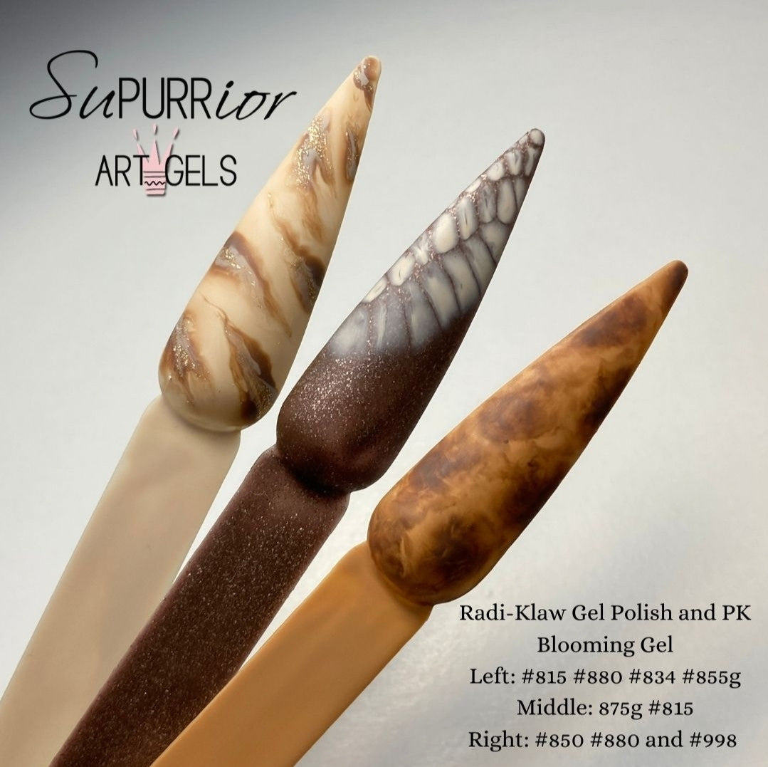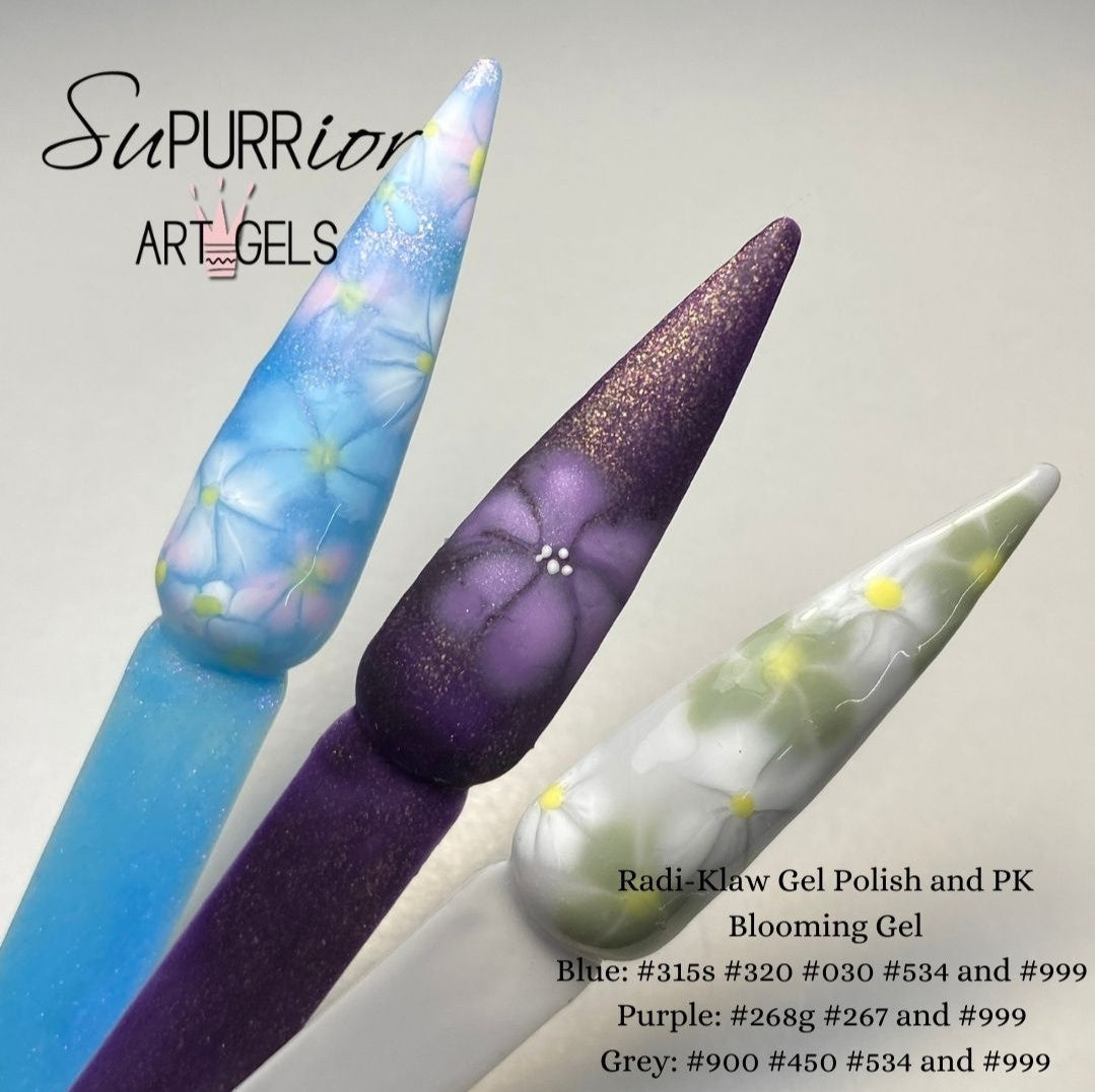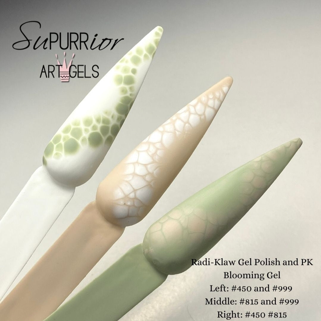 Create stunning designs combining Radi-Klaw Gel polish and Phat Kat Blooming gel.