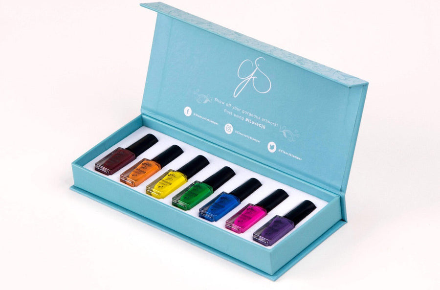 CjS Stamping polish is specifically formulated for the clear stamper. Hyper Pigmented polish also works nicely as nail polish! Most colors cover in one coat!