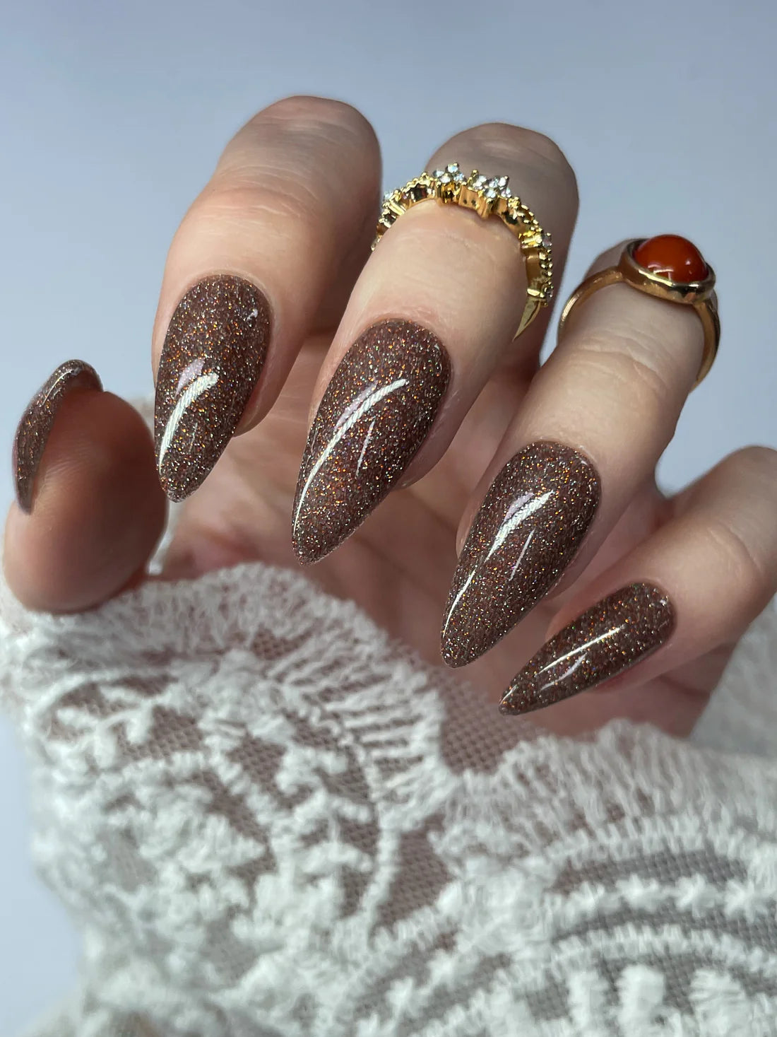 "Golden Globes," a dazzling bronze gel polish that's as lively as a Hollywood premiere! This reflective glitter bomb is your ticket to red carpet glamour, capturing the essence of a star-studded soirée in every drop. The glitzy bronze hue sparkles like a cascade of confetti, ensuring your nails steal the show wherever you go. Embrace the paparazzi vibes and let your fingertips become the center of attention. "Golden Globes" is not just a polish—it's your VIP pass to nail art that outshines the competition. Get ready to shine like a celeb and make every day a glamorous affair!
