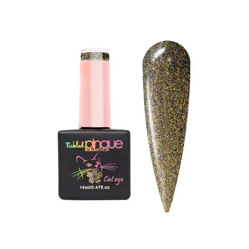 Tickled Pinque's iconic Cat Eye Colour Gels provide a high-shine, reflective, galactic effect. Each shade is infused with microscopic magnetic particles that allow you to add dimension to each nail by holding a nail magnet over the uncured gel to create infinite one-of-a-kind designs.