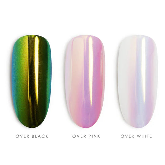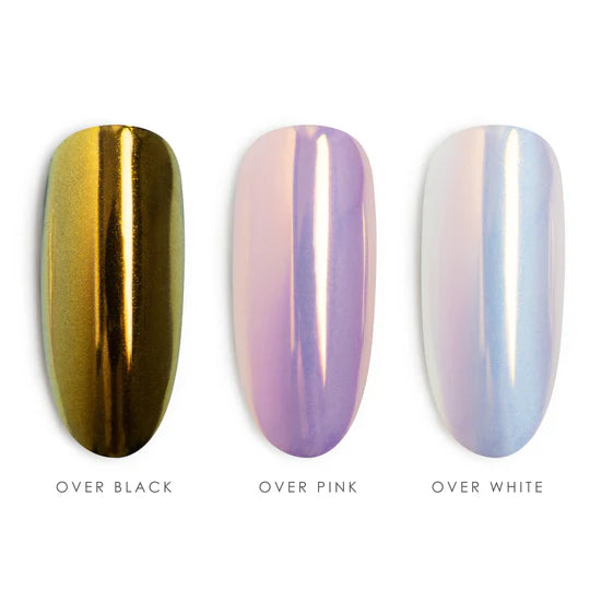 Mirror finish metallics and dimensional translucents, our CHROMEEZ Chrome Powder makes any chrome design E-ZEE! These high-quality chrome powders pair beautifully with our Emboss It, No Wipe Topcoat and Art Gels!