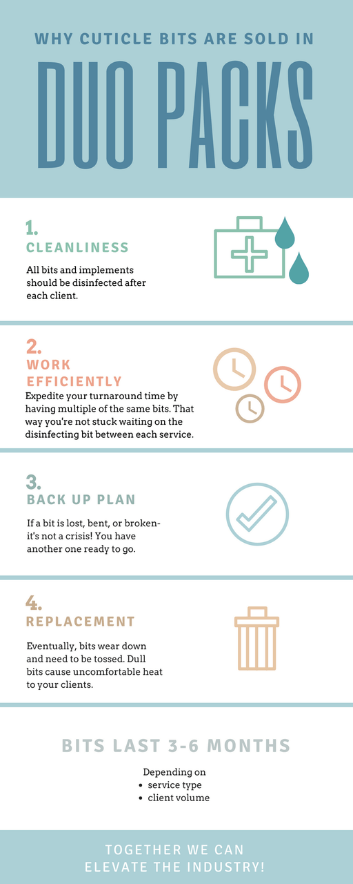 The little Detail bit is essential for detailed dry manicuring and cuticle cleaning! The thin slender tip is perfect for cleaning the side walls, especially for clients with deep c-curve nails. Can also used to file holes into enhancement to add charms or rings.