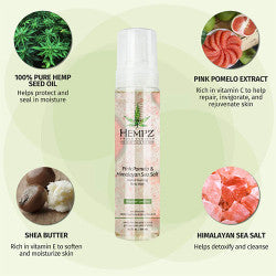 Hempz Pink Pomelo and Himalayan Sea Hempz Pink Pomelo and Himalayan Sea Salt Herbal Foaming Body Wash is a foaming body wash that cleanses away impurities and makes skin supple and nourished. Formulated with high-quality ingredients, including 100% pure hemp seed oil, pink pomelo and sea salt, this gentle body wash helps protect skin from environmental and natural factors while detoxifying skin. Rich in Vitamin A, C and E, the Hempz Body Wash will replenish moisture in the skin and repairs. Scented with a fresh, airy citrus scent, this formula is gluten-free, THC-free, paraben-free and cruelty-free.