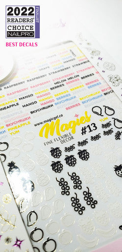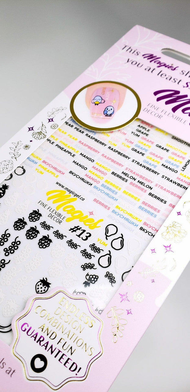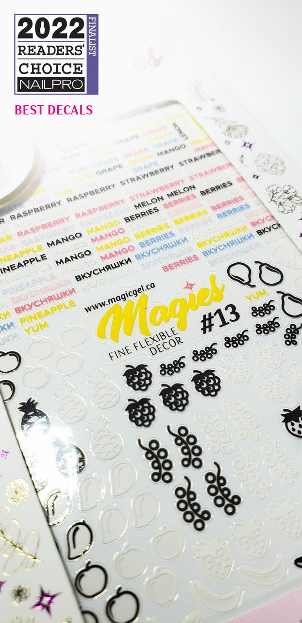 Add Magies to your service and transform your designs fast and easy. Each sheet features lots of Magies to last you for many nail services.
