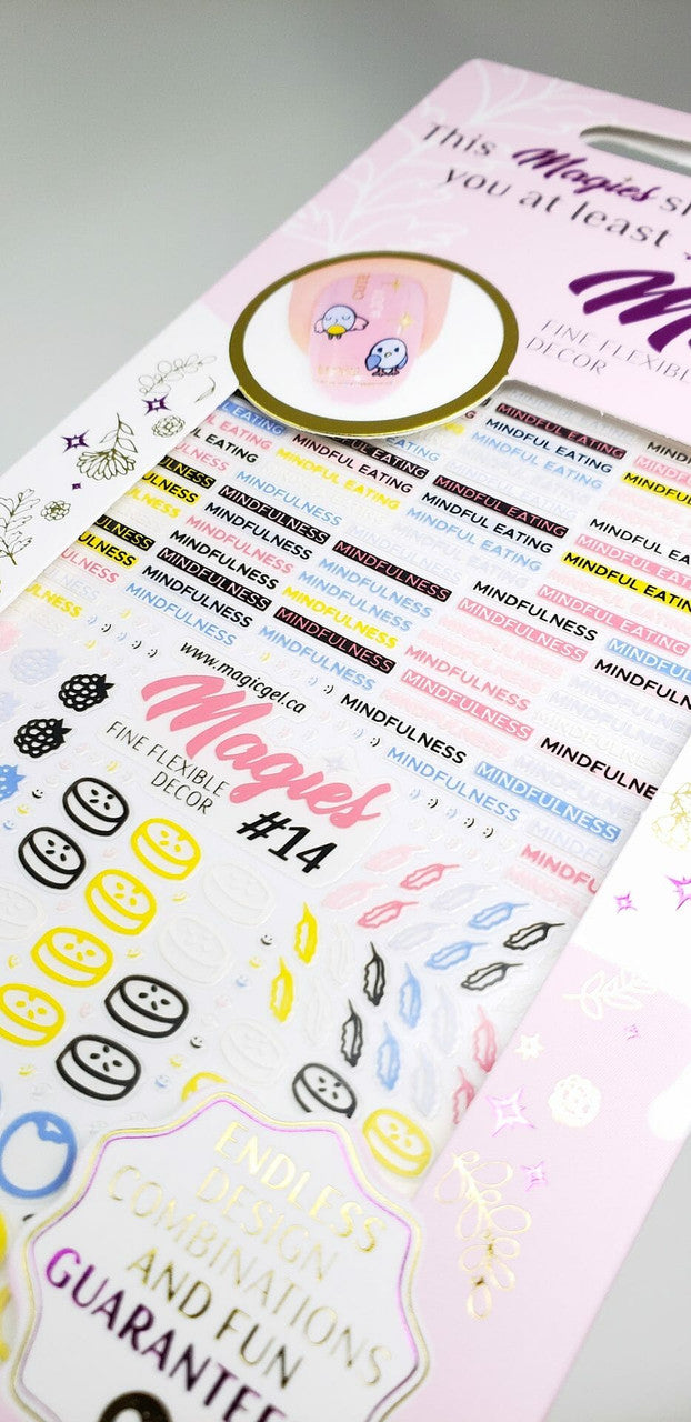 Add Magies to your service and transform your designs fast and easy. Each sheet features lots of Magies to last you for many nail services.