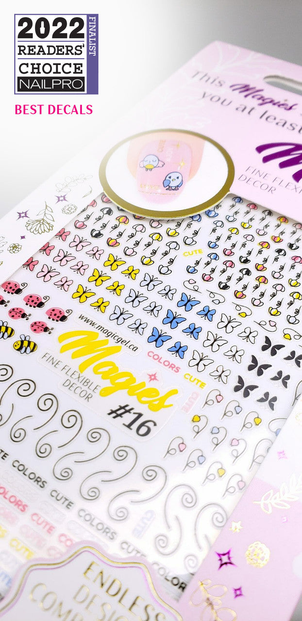 Add Magies to your service and transform your designs fast and easy. Each sheet features lots of Magies to last you for many nail services.