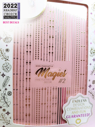 Add Magies to your service and transform your designs fast and easy. Each sheet features lots of Magies to last you for many nail services.