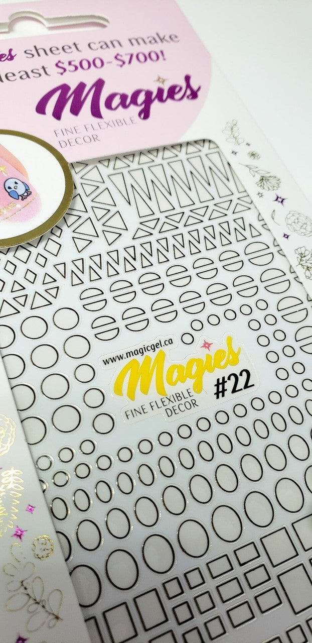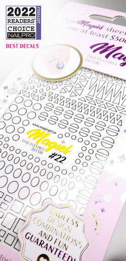 Add Magies to your service and transform your designs fast and easy. Each sheet features lots of Magies to last you for many nail services.