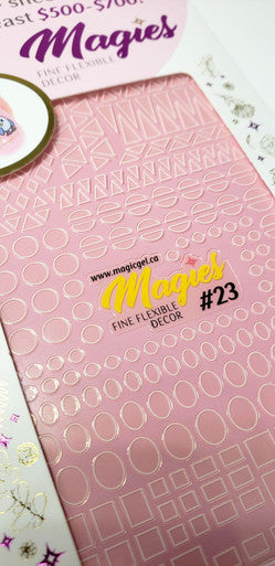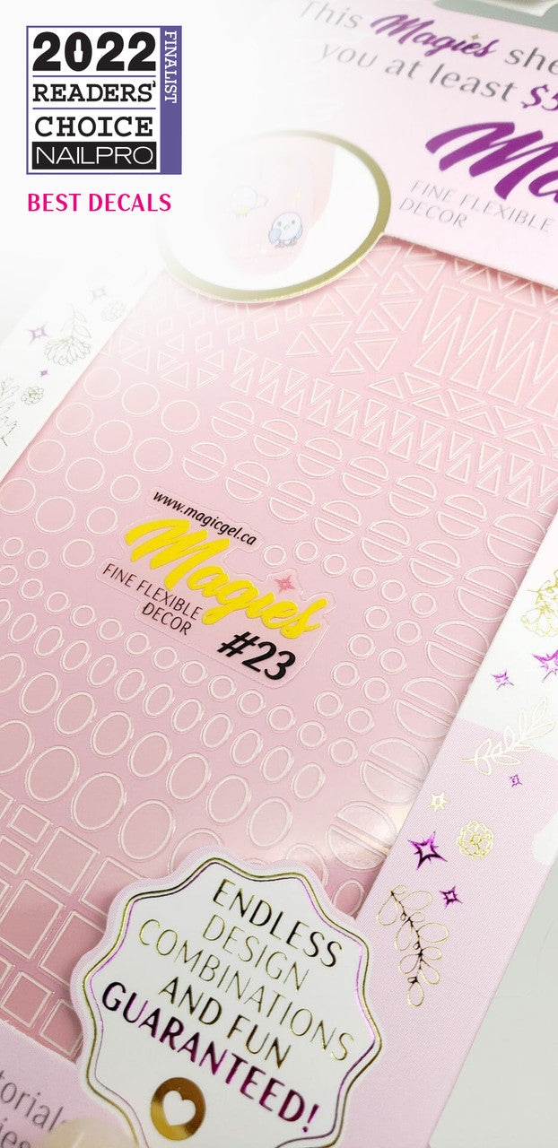 Add Magies to your service and transform your designs fast and easy. Each sheet features lots of Magies to last you for many nail services.